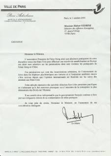 Maire d'un arrondissement de Paris demande au gouvernement fran鏰is de condamner la r閜ression par Jiang contre le Falun Gong