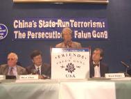 La table ronde était parrainée par le groupe à but non-lucratif des Amis du Falun Gong (Friends of Falun Gong – FOFG), le modérateur était un membre du conseil d’administration du FOFG et ancien ambassadeur des Etats-Unis en Hongrie, Mark Palmer. Il a ouvert la table ronde en citant un document issu de la commission pour les Droits de l’Homme aux Nations Unies en août de cette année qui déclare : « Le terrorisme d'État – ou ‘terreur venant d’en haut’ – est … le genre de terrorisme qui dans l’histoire et aujourd’hui fait le plus de dégâts. »