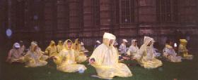 Londres : Des Falun accompagnent les pratiquants de Falun Dafa faisant les exercices devant le Parlement