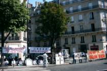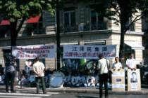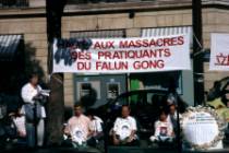 Face à l'escalade de la répression sanglante contre les élèves de Falun Gong en Chine menée par JIANG Zemin et son groupe de fripouilles en politique,après l'effort continu et persistant des pratiquants, finalement, le 24 août, pour la première fois, nous avons obtenu notre droit légitime d'être loyalement et ouvertement devant l'Ambassade de Chine en France pour protester contre la persécution et le massacre sanglant menés par JIANG Zemin, et son groupe de fripouilles en politique, contre les pratiquants de Falun Gong. photo : Une persécution violente