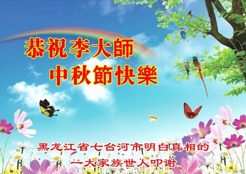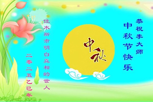 Des habitants de la ville de Jiamusi, dans la province du Heilongjiang, ont déclaré : « Nous comprenons les faits concernant Dafa grâce à un pratiquant. À l’occasion spéciale de la fête de la Mi-Automne, nous souhaitons une joyeuse fête à Maître Li ! »