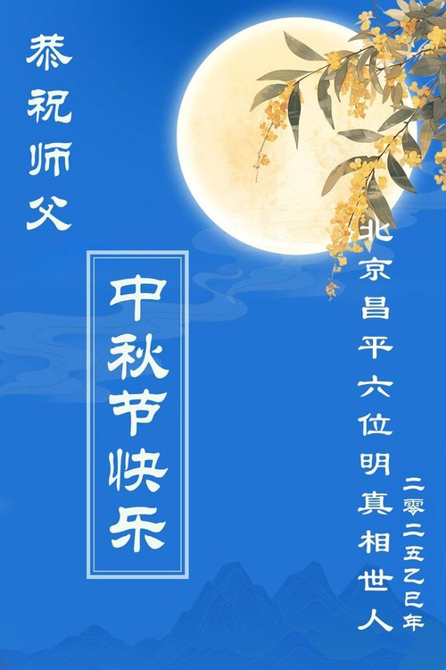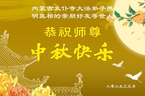 (Minghui.org) À l’approche rapide de la fête de la Mi-Automne 2025 (qui tombe le 6 octobre), les sympathisants du Falun Dafa à travers la Chine envoient leurs sincères salutations à Maître Li Hongzhi, fondateur du Falun Dafa, pour lui souhaiter une joyeuse fête.