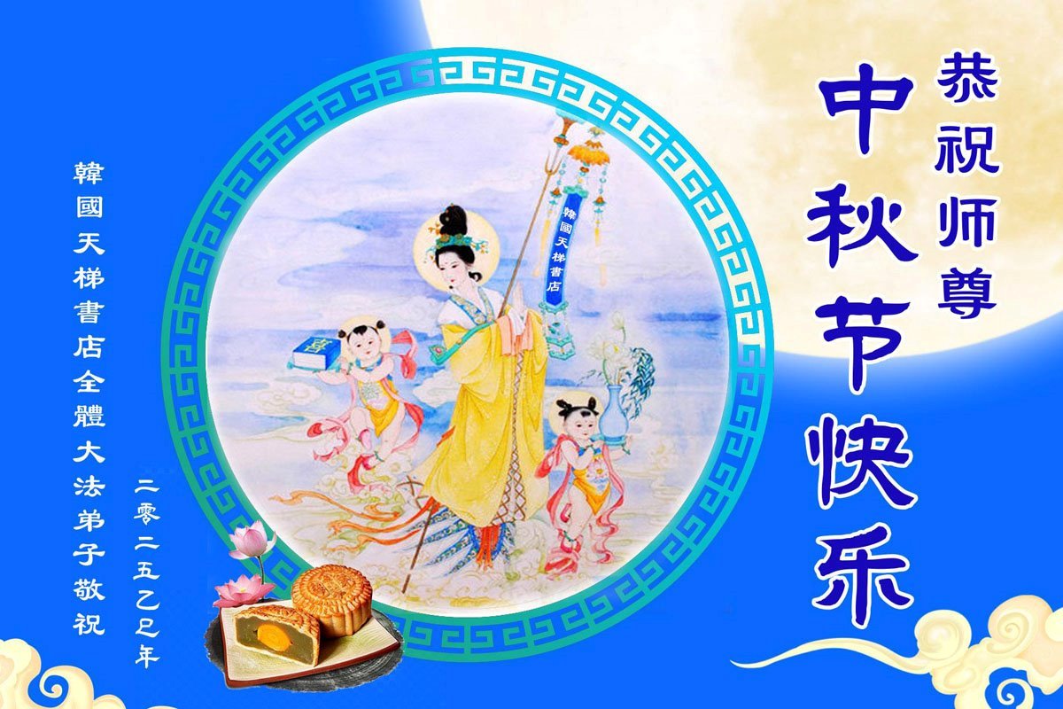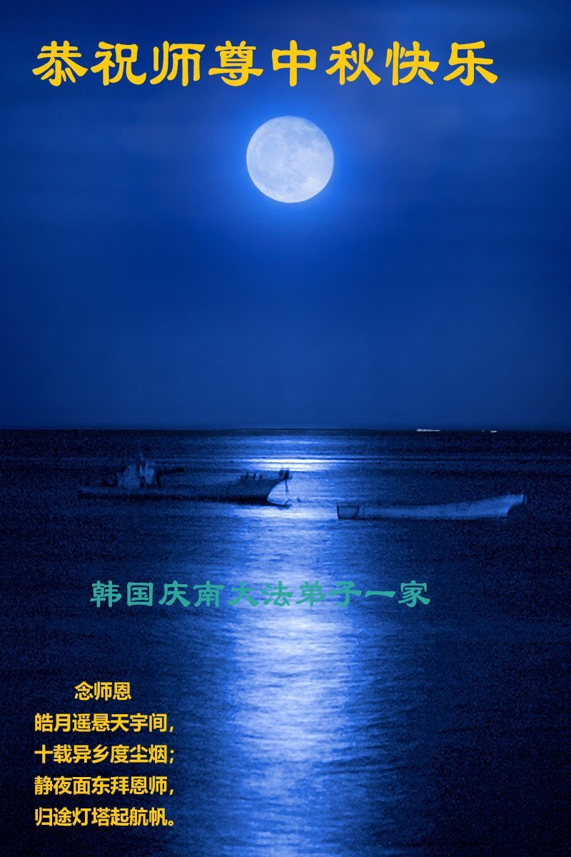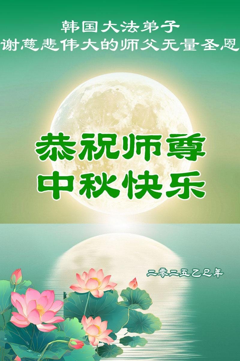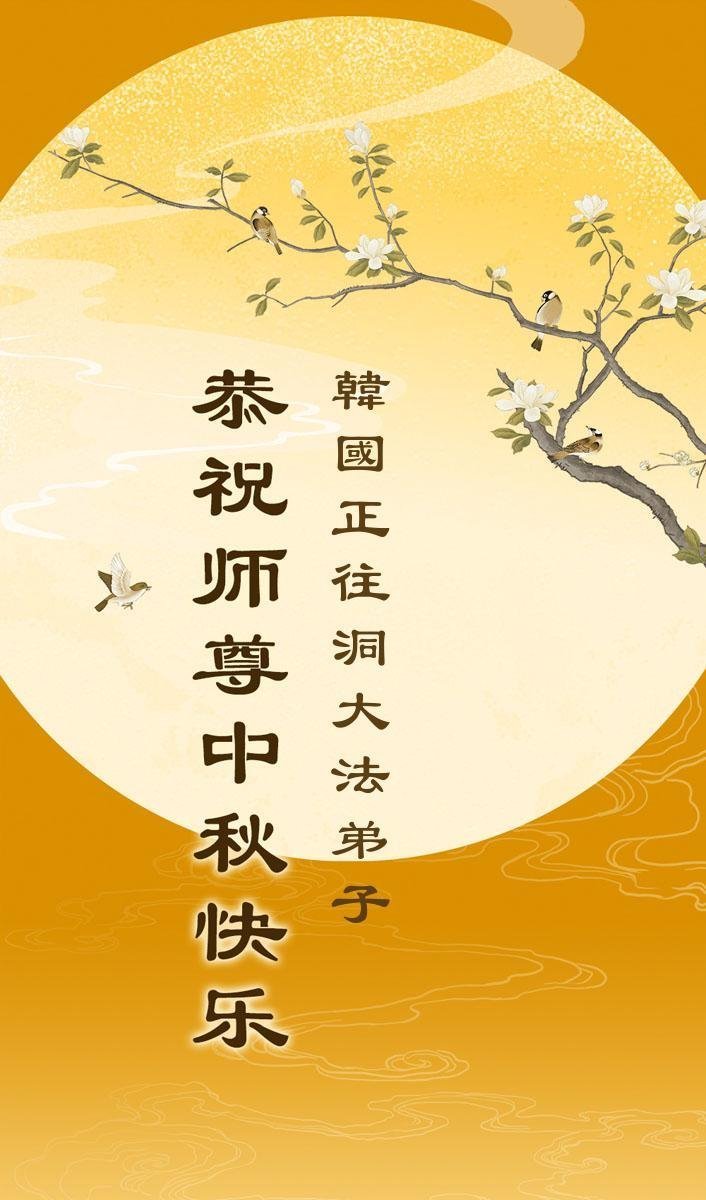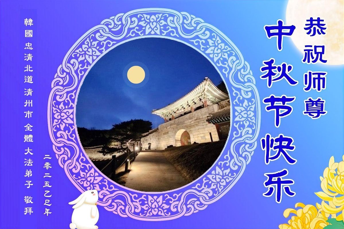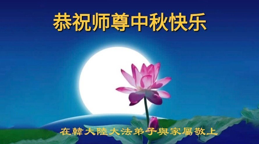 (Minghui.org) Dans cet article, nous présentons une sélection des vœux envoyés par des pratiquants à Séoul, sur l’île de Jeju, à Incheon, sur l’île de Yeongjong, à Ansan, dans la province du Gyeongsang du Sud, à Chungsejong, à Gimhae, à Siheung, à Goyang, dans la province du Chungcheong du Nord, dans la province du Jeolla du Nord, à Suwon, Gimhae, Cheonan, Bucheon, Daejeon, Daegu, Gwangju, la province du Jeolla du Sud, la province du Gyeongsang du Nord, Gangwon Yeongdong, Changwon, Haman, Ulsan et d’autres endroits en Corée du Sud. Ils souhaitent à Maître Li une joyeuse fête de la Mi-Automne.