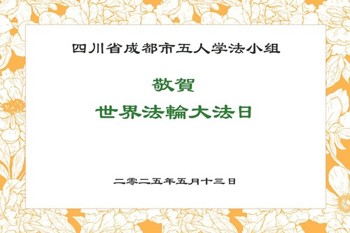 Les pratiquants de Falun Dafa de la ville de Chengdu célèbrent la Journée mondiale du Falun Dafa et souhaitent respectueusement à Maître Li Hongzhi un joyeux anniversaire !