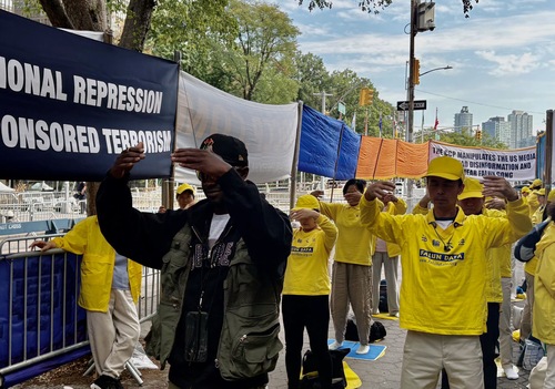 Les pratiquants ont manifesté et pratiqué les exercices lors de l’Assemblée générale de l’ONU le 23 septembre 2025.