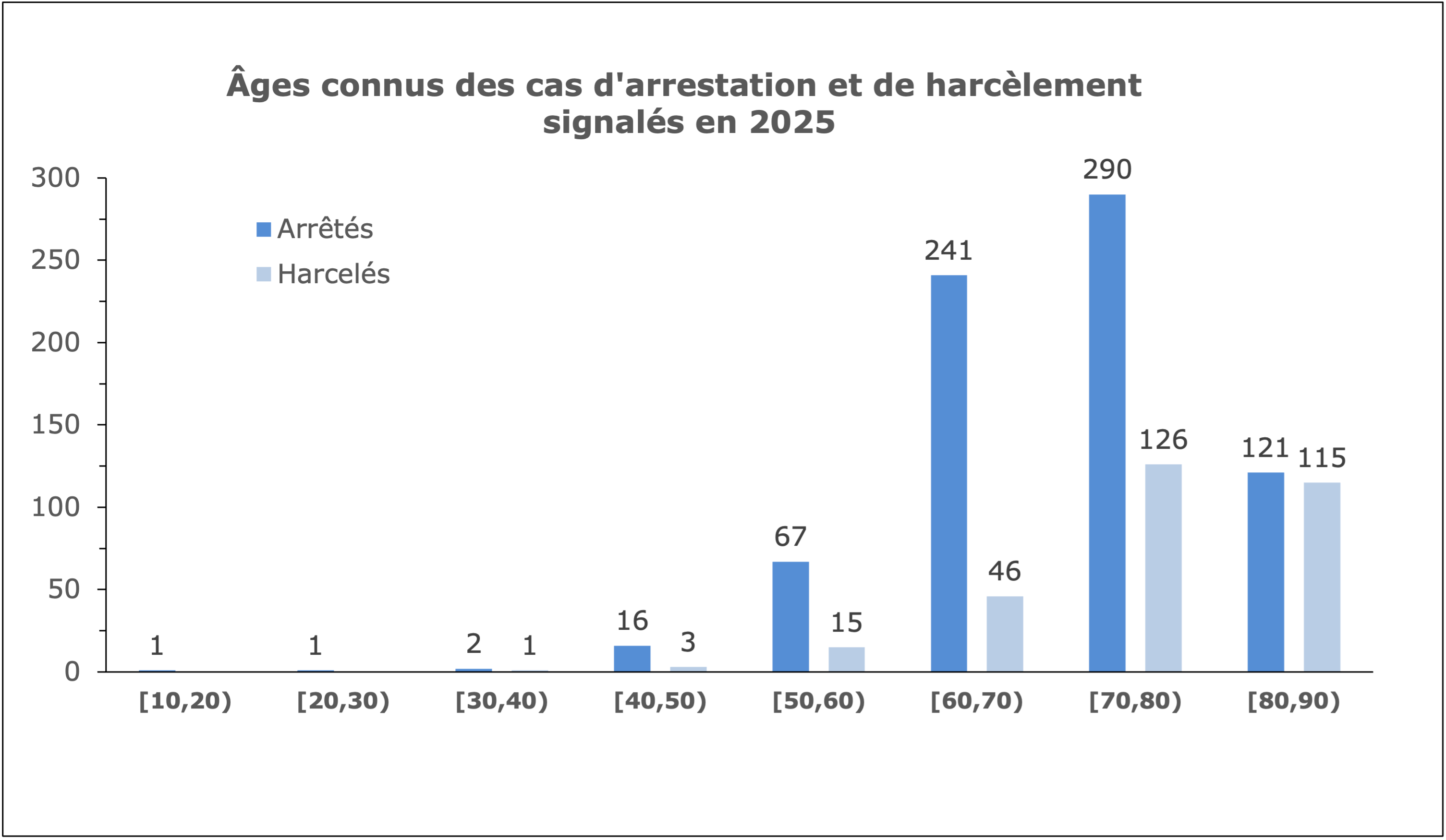 Des informations sur l’âge de 1053 des 4803 pratiquants visés étaient disponibles. Parmi ce groupe, on retrouve une pratiquante adolescente, une autre d’une vingtaine d’années, trois trentenaires, 19 quadragénaires, 82 quinquagénaires, 287 sexagénaires, 416 septuagénaires, 236 octogénaires et 8 nonagénaires.