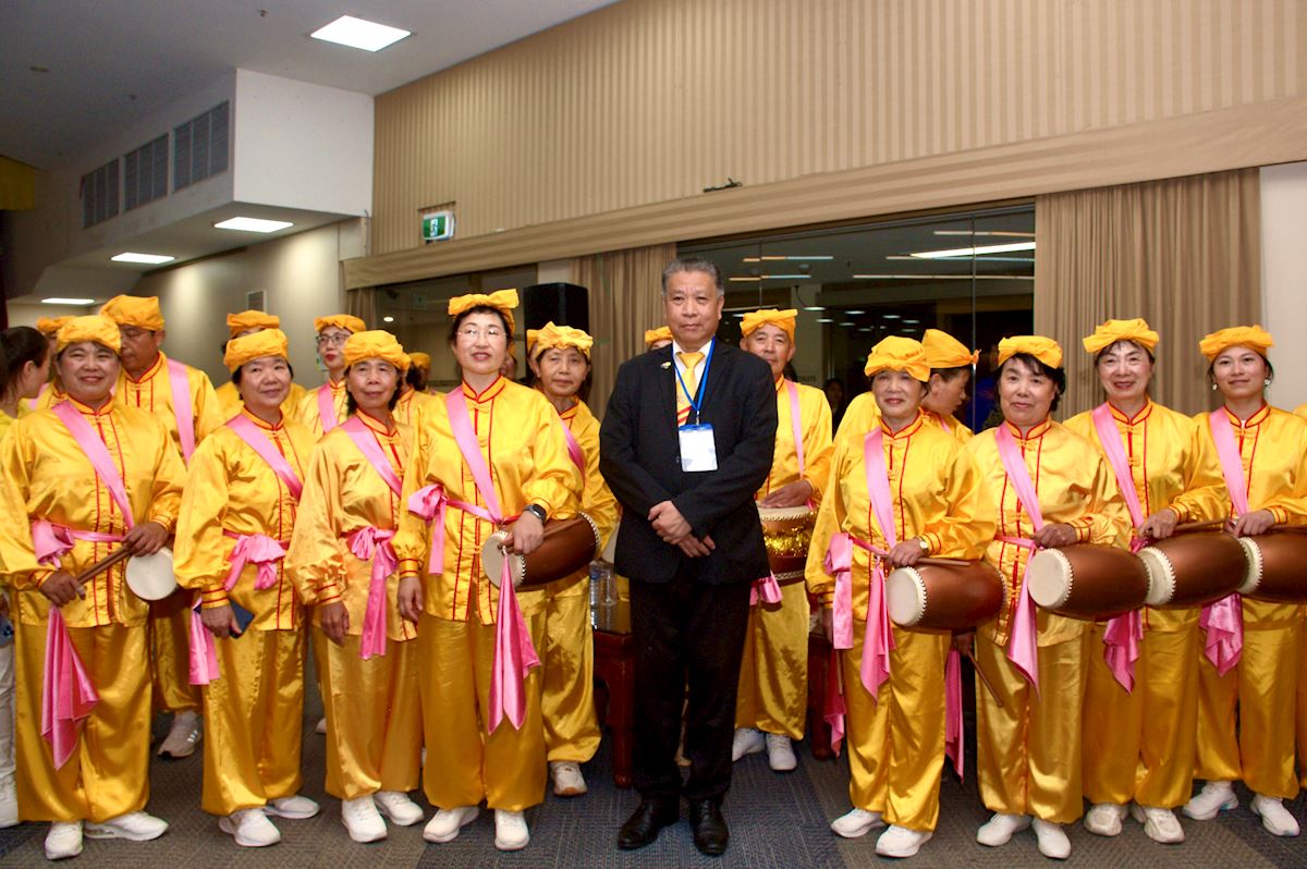 Duy Quang Nguyen, président de la communauté vietnamienne en Australie (VCA), a posé pour une photo de groupe avec la troupe de tambourins de ceinture.