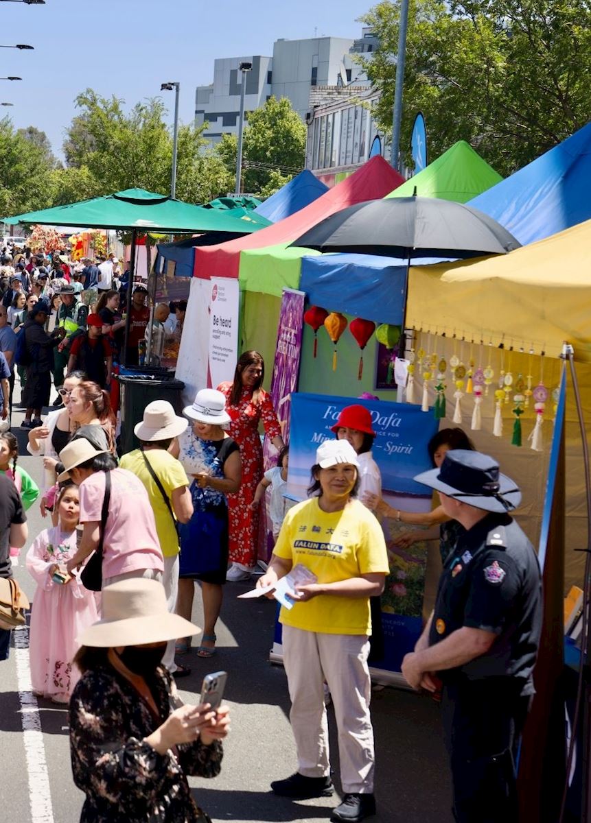 Les pratiquants ont présenté le Falun Dafa au Festival du Nouvel An lunaire East Meets West 2026 à Footscray le 25 janvier.